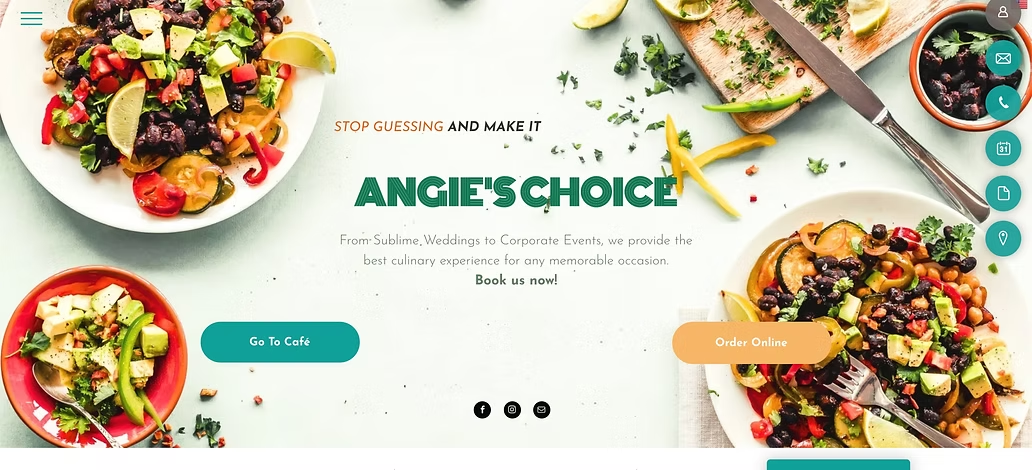 Menu Showcase: A dynamic menu page was designed to highlight Angie’s signature offerings, with categories for different event types (weddings, corporate events, parties).